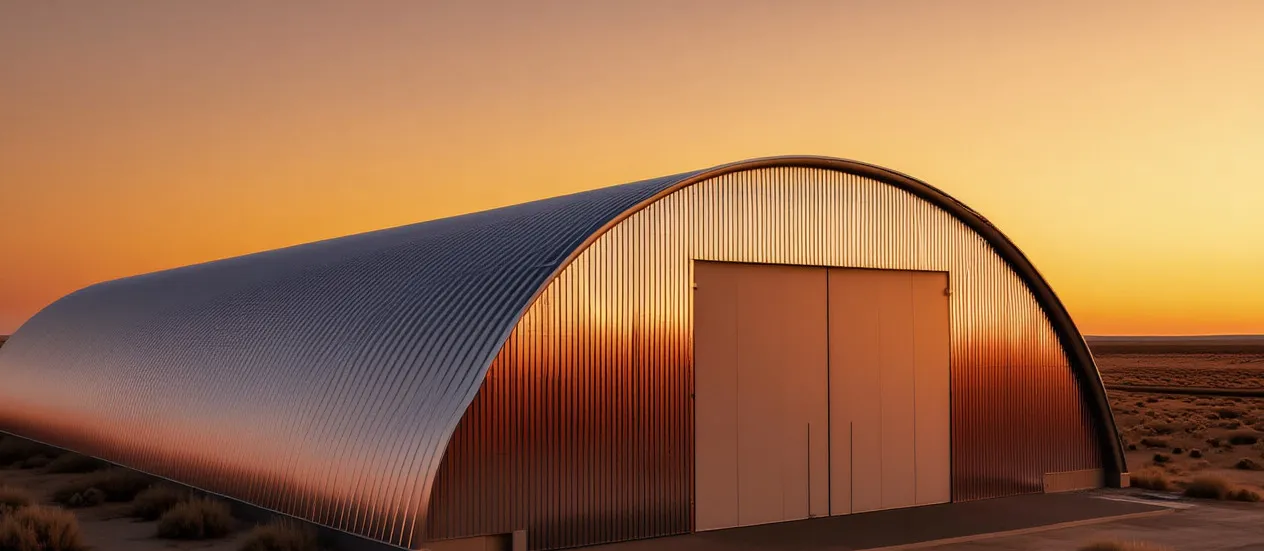 Монтаж бескаркасного гаража занимает всего 2–3 недели — в разы быстрее традиционных методов строительства. Работы ведутся в любое время года, не требуют тяжёлой техники и большого числа рабочих. За счёт простоты технологии и минимального расхода материалов стоимость проекта на 25–30 % ниже аналогов с каркасом. Эксплуатационные расходы также снижены: металл не нуждается в частом обслуживании, а герметичная оболочка защищает содержимое от осадков и перепадов температур. Долговечность конструкции превышает 30 лет при минимальном уходе.